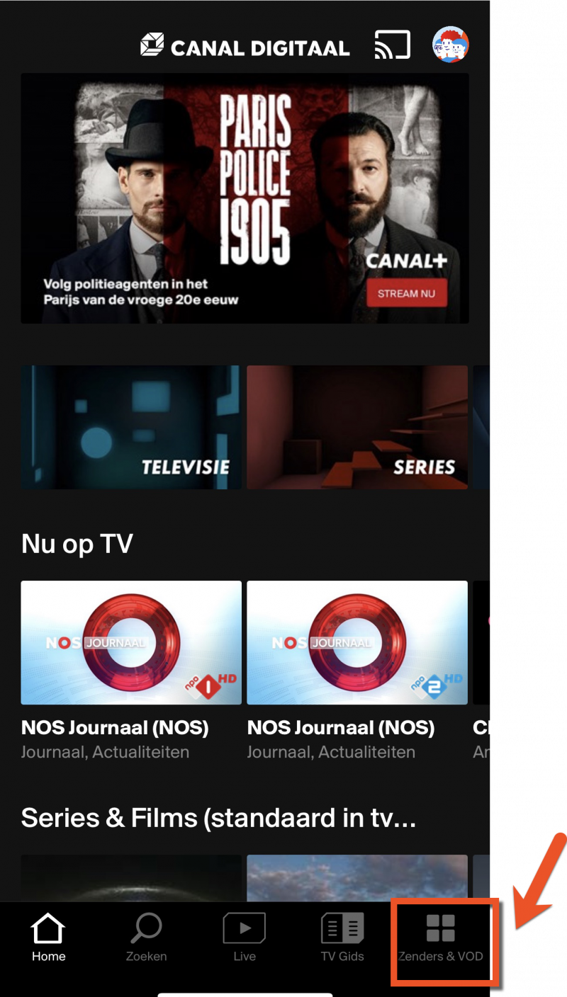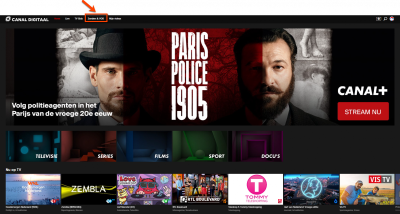 • Het nieuwe menu kan op dezelfde manier geselecteerd worden als het huidige +Aanbod menu. Wanneer je ‘Zenders & VOD’ selecteert, kom je op de nieuwe pagina waar je het aanbod kan ontdekken.